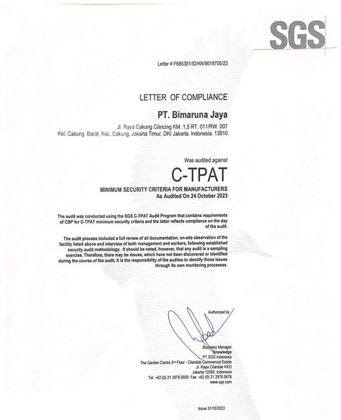 Customs-Trade Partnership Against Terrorism. This US Customs and Border Protection program signifies our compliance with high security standards, ensuring a robust, faster, and more secure international supply chain.