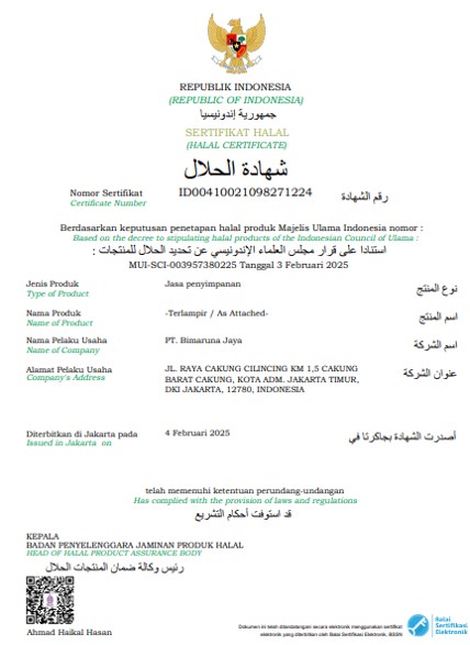 PT. Bimaruna Jaya's dedication to operational excellence is validated by a rigorous set of international and national certifications.